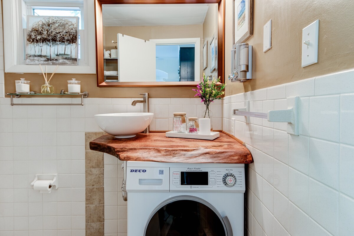 - A brand new washer and dryer combo unit (2 in 1) available in chalet bathroom. (We recommend running small loads; clothes might come out damp, though they airdry quickly with fans.)