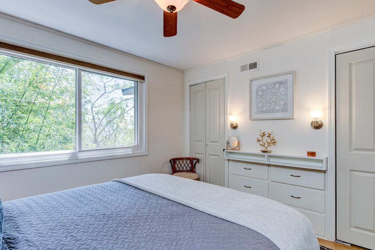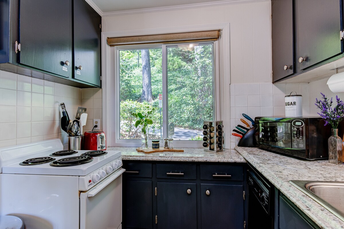 The home is secluded on a mountain top with beautiful views, offers hiking opportunities and occasional bear sightings, yet it is still only a 5-minute drive to downtown. It really is in one of the best locations in the entire city of Asheville!